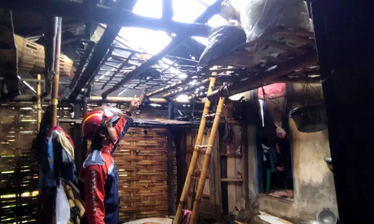 “Kami sedang makan siang. Tiba-tiba suara seperti gemuruh datang dari luar. Tidak lama atap rumah berderak dan terangkat. Kami hanya bisa keluar sambil membawa anak-anak,” ujar Pak Rohim, warga setempat.