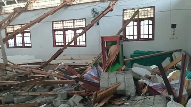 - Salah satu tempat ibadah, Gereja Jemaat Elim di Desa Masani, roboh total saat jemaat sedang beribadah. Sebanyak 10 jemaat terluka dan segera dievakuasi.