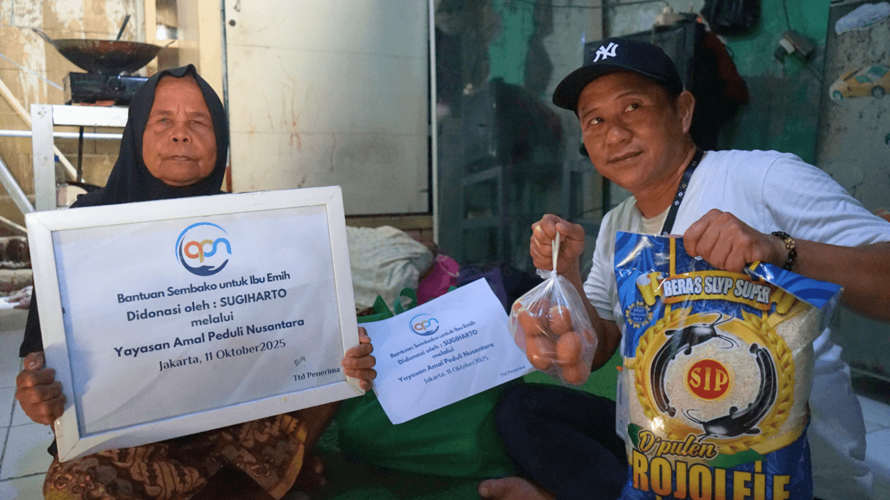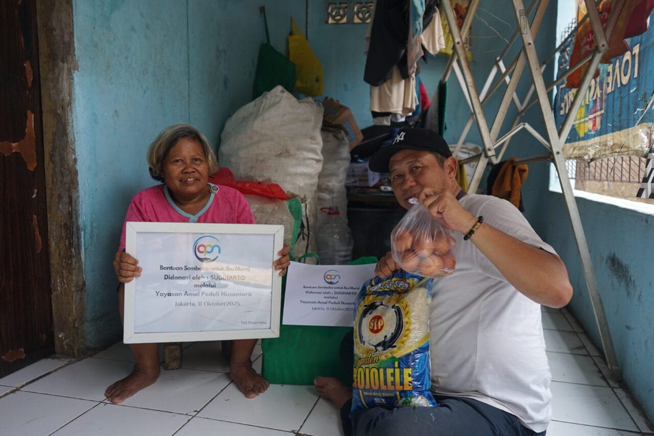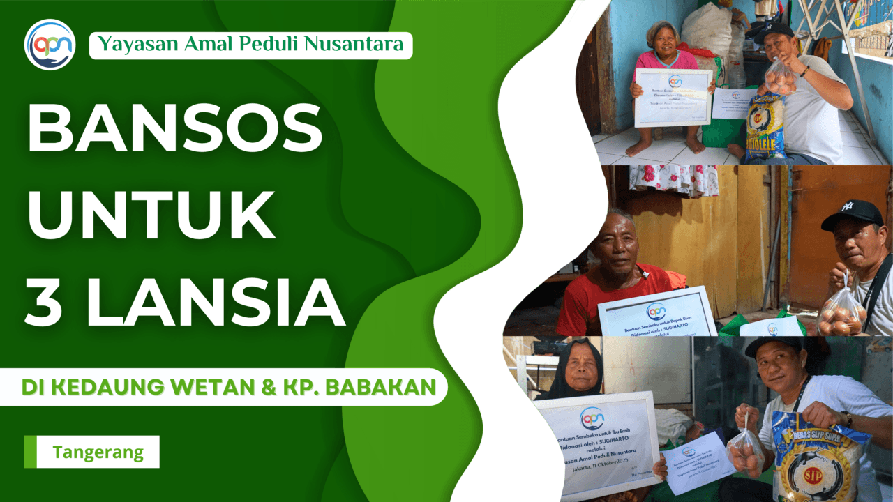 Dalam upaya terus menebar kepedulian bagi sesama, Yayasan Amal Peduli Nusantara kembali menyalurkan bantuan sembako untuk tiga lansia di wilayah Tangerang. Bantuan ini diharapkan dapat meringankan kebutuhan harian para penerima yang hidup dalam keterbatasan.