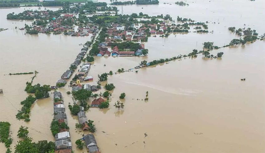 ( Dokumentasi : Tanggul Sungai Citarum Jebol, 553 KK di Muaragembong Bekasi Terdampak Banjir, Foto bersumber dari situs Tbnews/Antara )