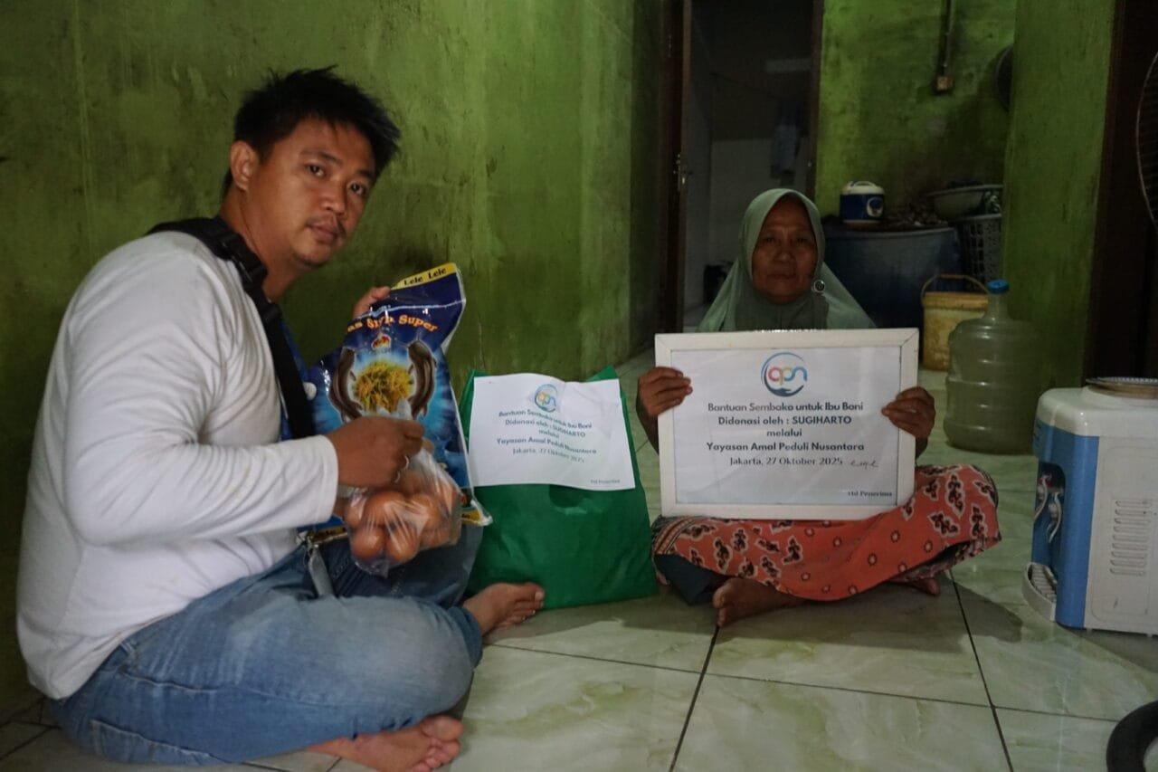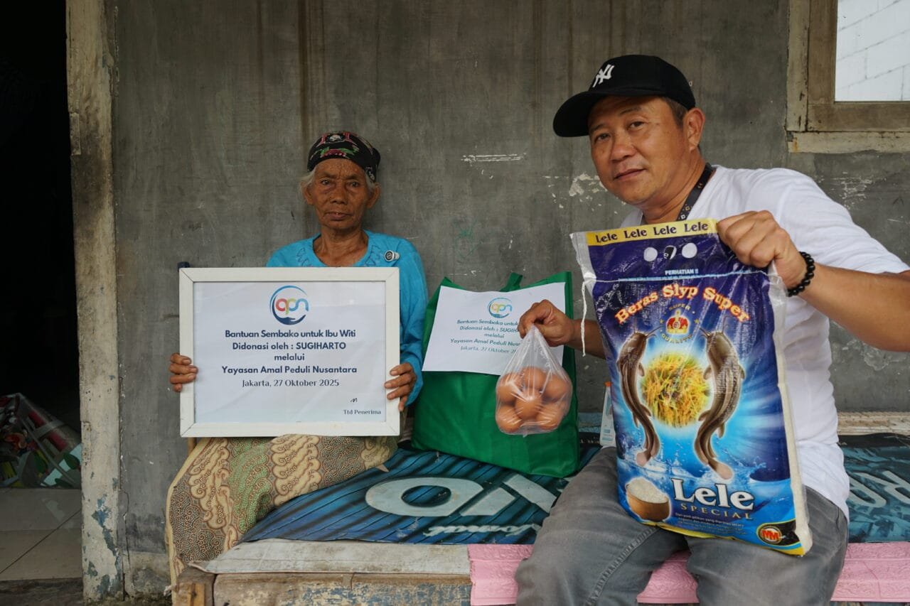 Peduli kepada mereka yang berjuang di usia lanjut menjadi komitmen utama Yayasan Amal Peduli Nusantara. Pada momen penuh kepedulian ini, tim relawan menyerahkan paket sembako kepada empat lansia prasejahtera di wilayah Tangerang yang selama ini bertahan hidup dengan kondisi ekonomi terbatas.