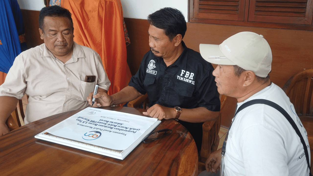 ( Dokumentasi : Proses penandatanganan sertifikat penyerahan Bantuan beras 1,5 ton yang diserahkan pada 5 maret 2026, untuk acara bakti sosial FBR korwil jakarta barat pada 8 maret 2026 )