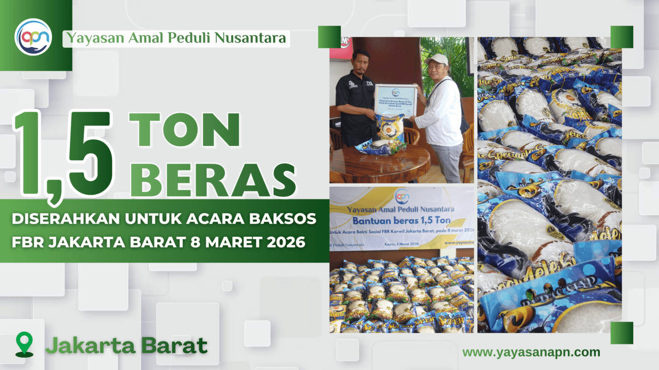 Pada 3 Maret 2026, Yayasan Amal Peduli Nusantara menerima amanah donasi beras sebanyak 1,5 ton dari para dermawan. Bantuan ini bukan sekadar bahan pokok, tetapi juga bentuk kepedulian yang akan dirasakan langsung oleh masyarakat yang membutuhkan.