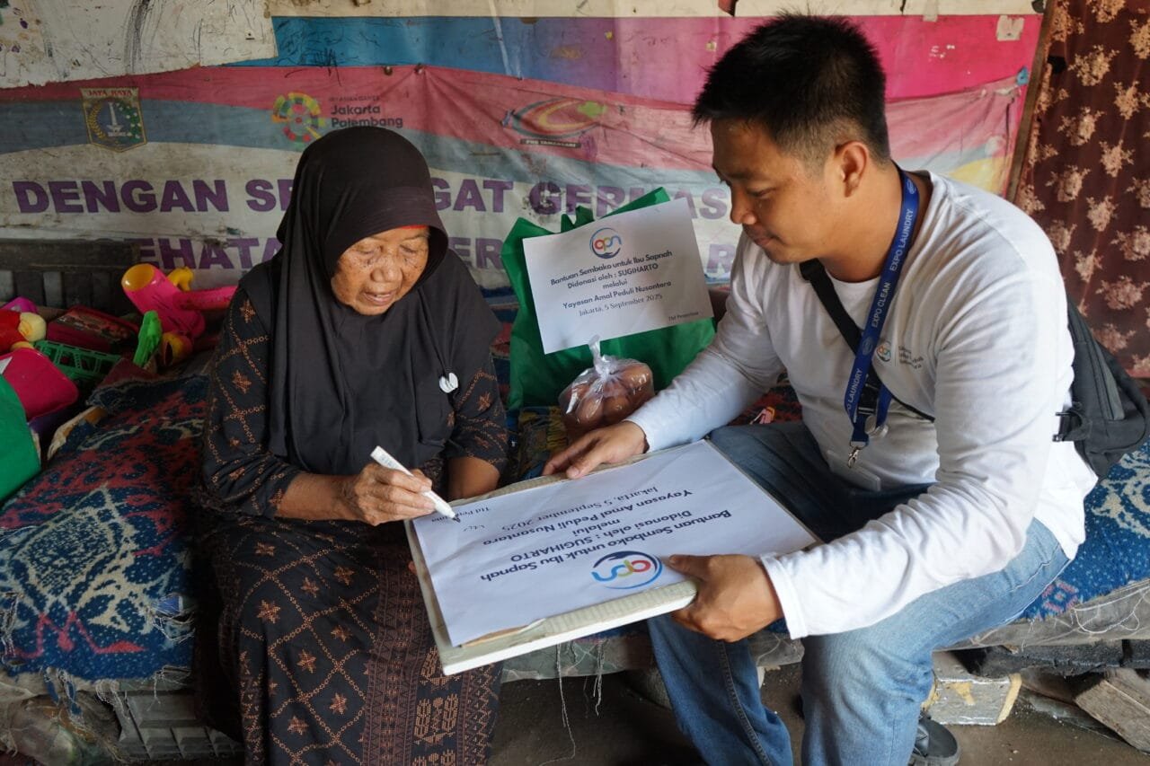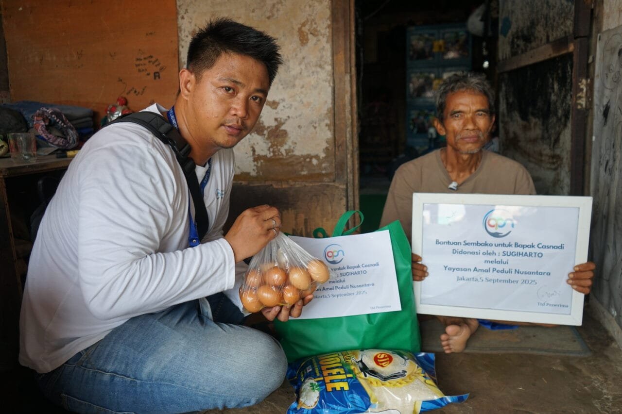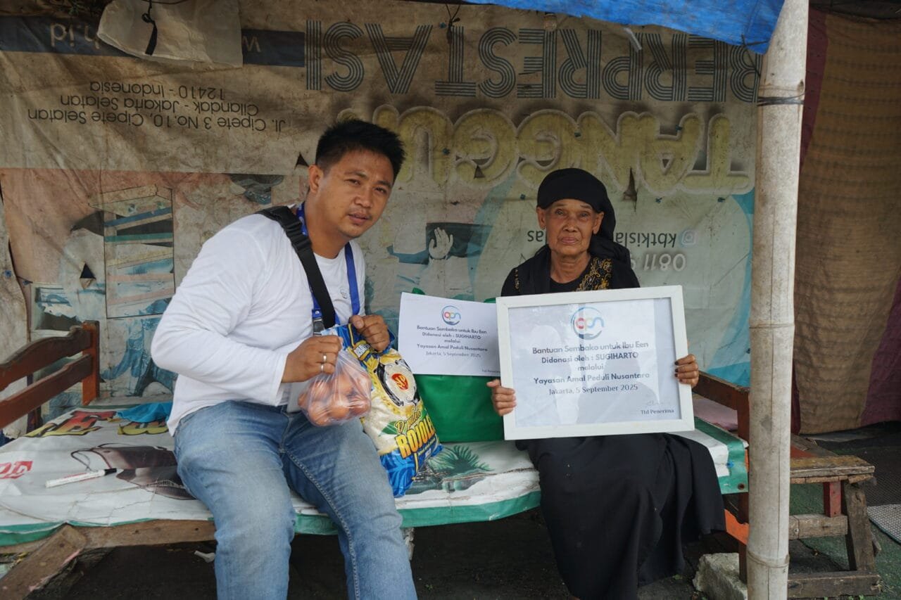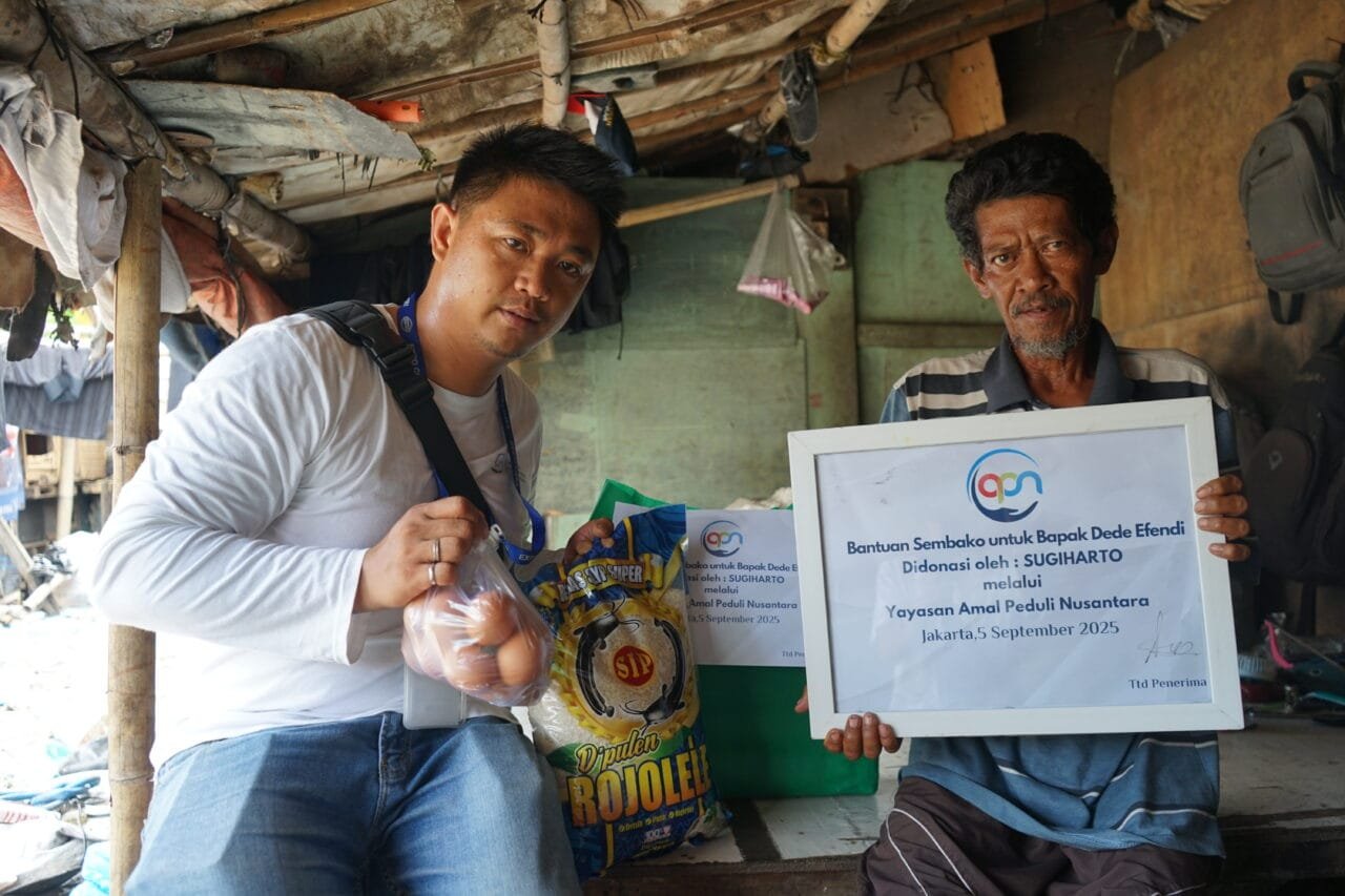Bekasi, 5 September 2025 – Yayasan Amal Peduli Nusantara kembali menyalurkan bantuan sembako kepada empat lansia yang membutuhkan di wilayah Cikiwul, Bantar Gebang, Bekasi. Bantuan ini merupakan wujud kepedulian kepada para orang tua yang masih berjuang keras di usia senja mereka.